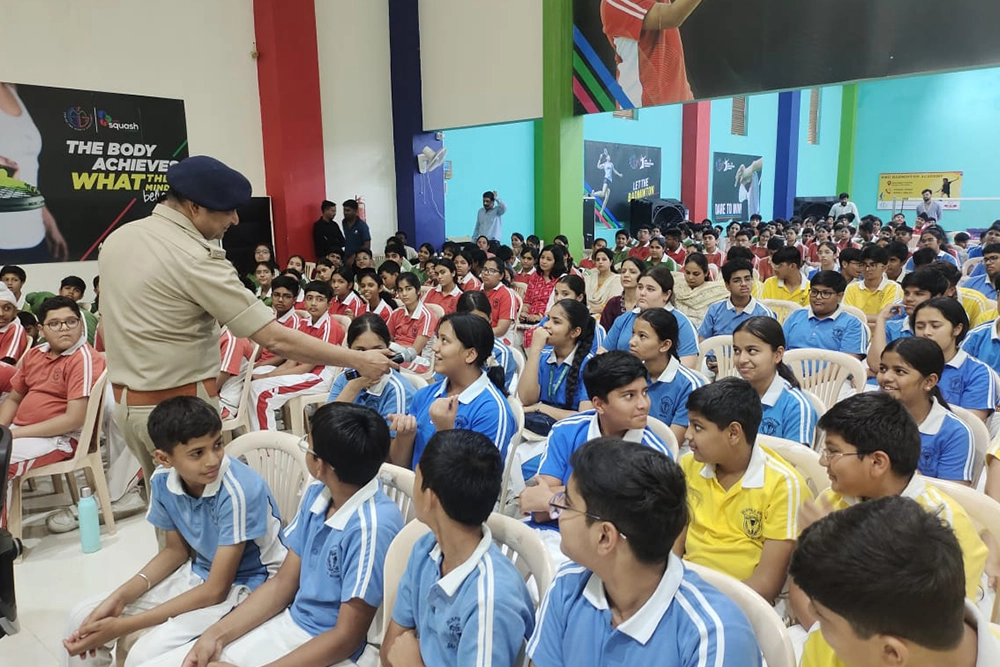 A Cyber Security Seminar was organized at the Sports Complex, DPS Rau, for students of classes 8 to 12. The session was conducted by Mr. Rajesh Dandotiya, Additional DCP, Crime Branch, Indore, marking his 600th awareness seminar.